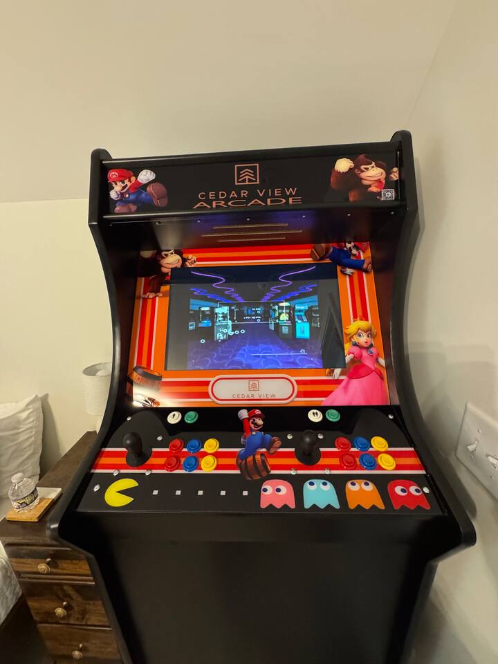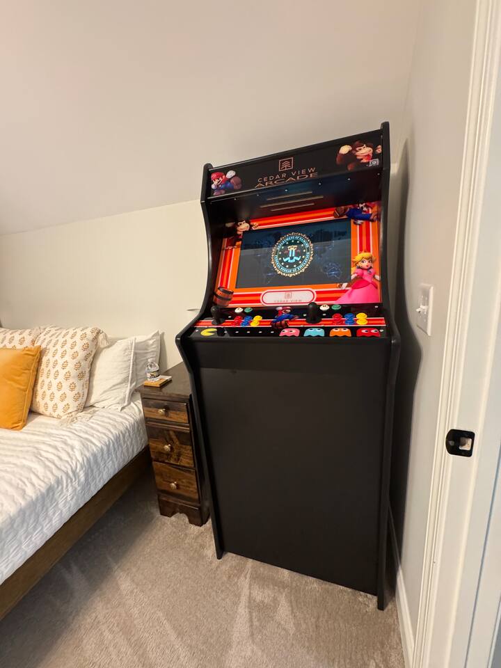 Cedar View Highlights: • Charming Retreat: 3-bedroom, 2.5-bath, 2-story home with stunning countryside views. • Comfortable Sleeps: Two king beds and one queen bed. • Bathrooms: Includes a walk-in shower and tub/shower combo. • Outdoor Bliss: Front and back porches with serene views. Relaxing Amenities: 🎮 New Amenity Alert! We’ve added a full-size arcade game console with 3,000+ nostalgic classics ✨ A few highlights: • 🔥 Private hot tub • 🕹️ Arcade machine with 3000+ games • 🌄 Quiet country setting • Hot Tub: Year-round, covered relaxation • Firepit: Cozy seating for stargazing nights. • Hammocks: Two tree-hung for peaceful naps. • Custom Bridge: Sunset views over a beautiful ravine. Reconnect with nature at Cedar View!